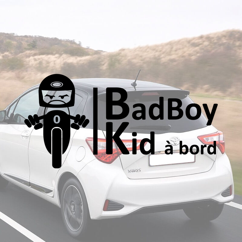 Sticker – Badboy à bord – voiture – vinyle extérieur. Sticker vinyle résistant, pose facile, idéal pour personnaliser voiture, boîte aux lettres ou autre support selon le modèle.