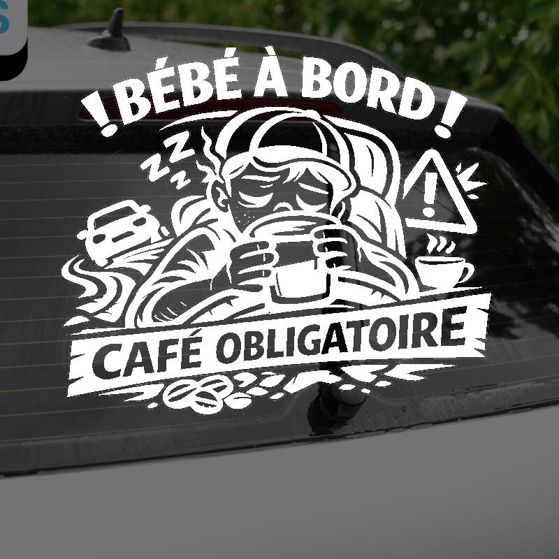 Transformez vos trajets en famille en un moment amusant avec notre sticker vinyle « Bébé à Bord – Café Obligatoire ». Ce sticker est conçu pour apporter un sourire aux visages de ceux qui croisent votre chemin.