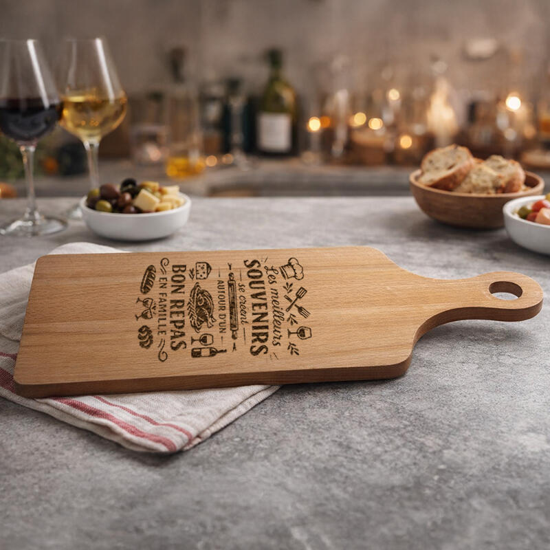 Personnalisez votre planche à découper avec le texte de votre choix, pour un cadeau unique qui marquera les esprits.