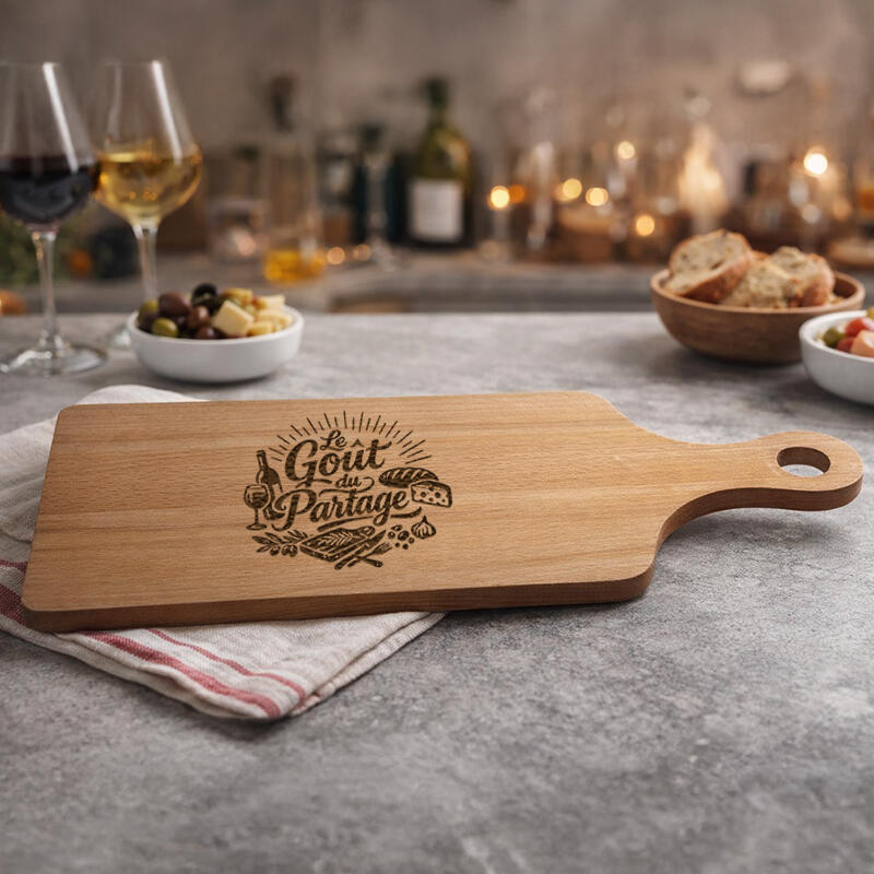 Présentation du produit : La planche à découper Le Goût du Partage est un accessoire indispensable pour toute cuisine. Fabriquée en bois de qualité, elle allie esthétisme et fonctionnalité.