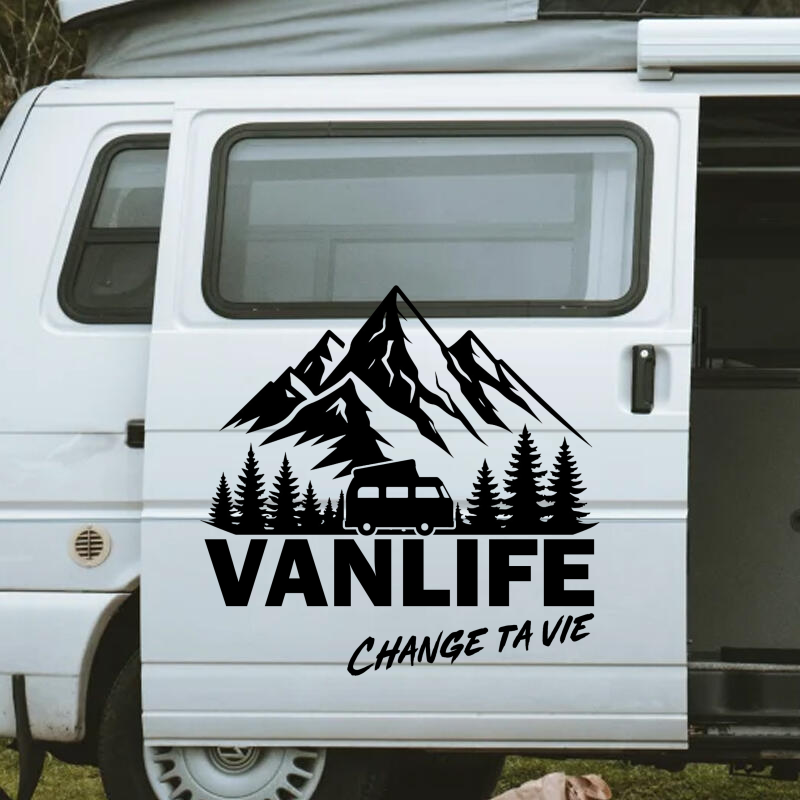 Découvrez notre sticker vinyle ‘Change la vie’ dédié aux passionnés de vanlife. Ce design unique apporte une touche d’aventure à votre décoration tout en exprimant votre passion pour les voyages. Fabriqué en vinyle de haute qualité, il est durable et facile à appliquer sur toute surface.