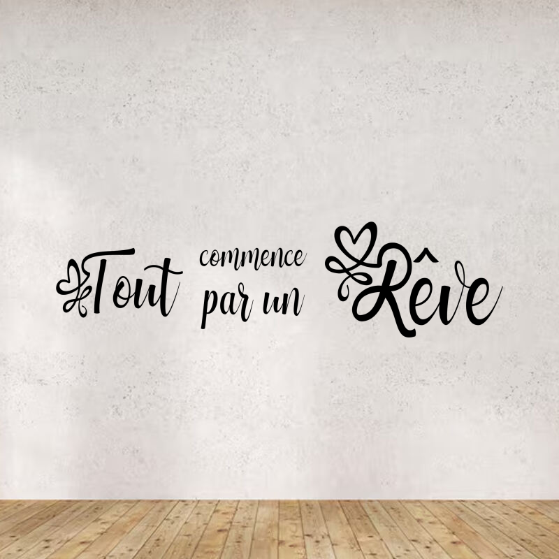 Ajoutez une touche de créativité à vos murs avec notre sticker vinyle « Tou commence par un rêve ». Ce design élégant et moderne est parfait pour la chambre, le salon ou toute autre pièce de votre maison.