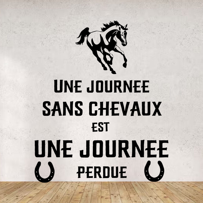 Ce sticker vinyle « Un jour sans cheval » est parfait pour les amoureux des animaux et les passionnés d’équitation. Design original et pleine couleur, il apportera une ambiance décontractée à n’importe quelle pièce. Facile à appliquer et à retirer, il s’adapte à tous les types de surfaces. Transformez votre décoration avec ce clin d’œil amusant au monde équestre !